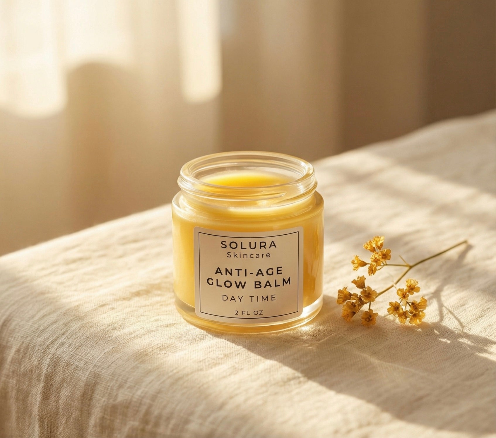 "Our Organic Daytime anti-aging Balm brightens and hydrates your skin for a youthful glow all day long"